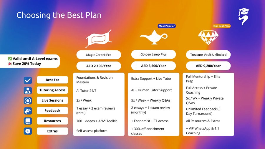 وصول كامل حتى آخر امتحان A-Level (يشمل تجربة مجانية لمدة 7 أيام)