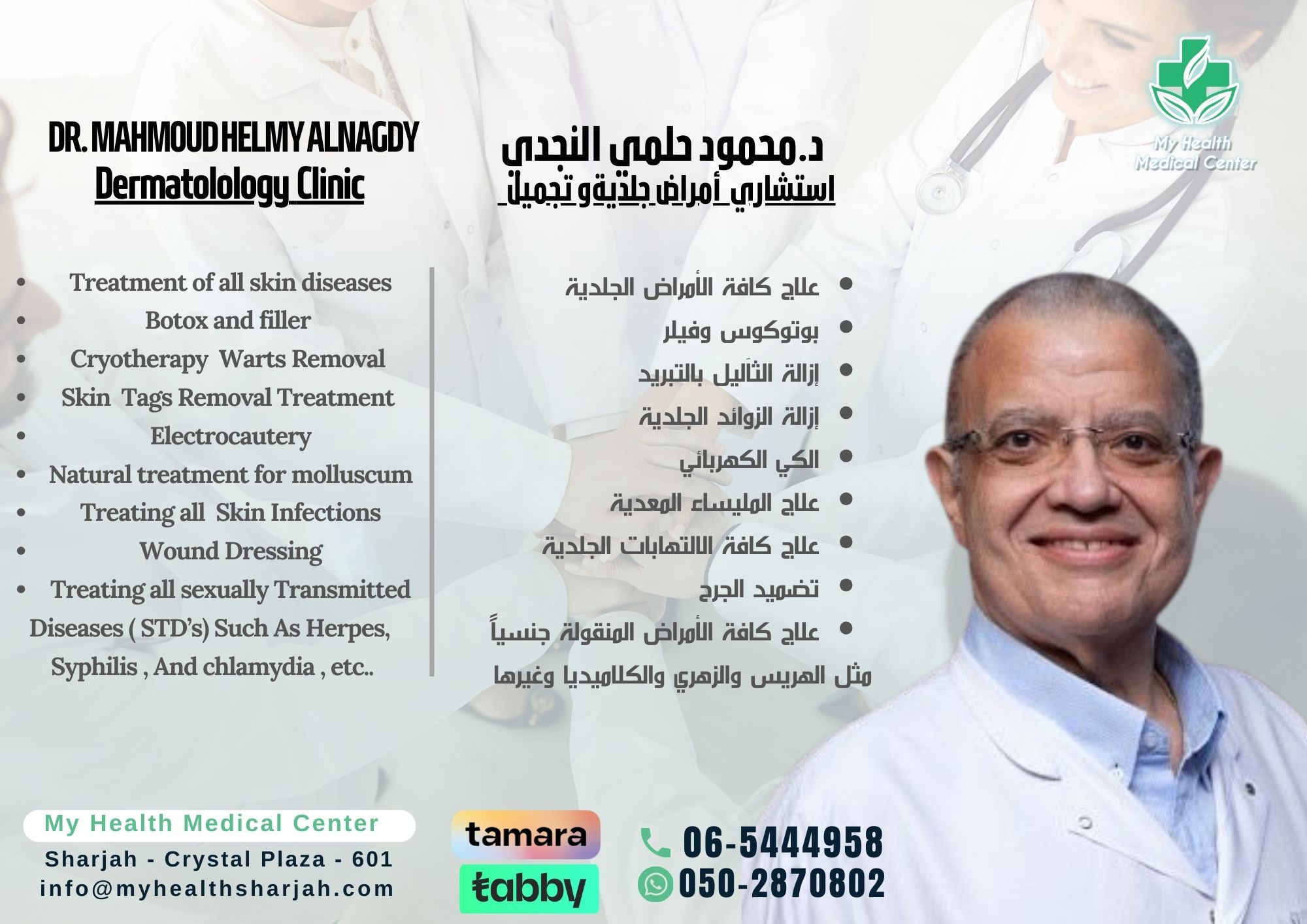 خصم على خدمات الأمراض الجلدية: ٥٠٪ على الاستشارة + ٣٠٪ على الإجراء